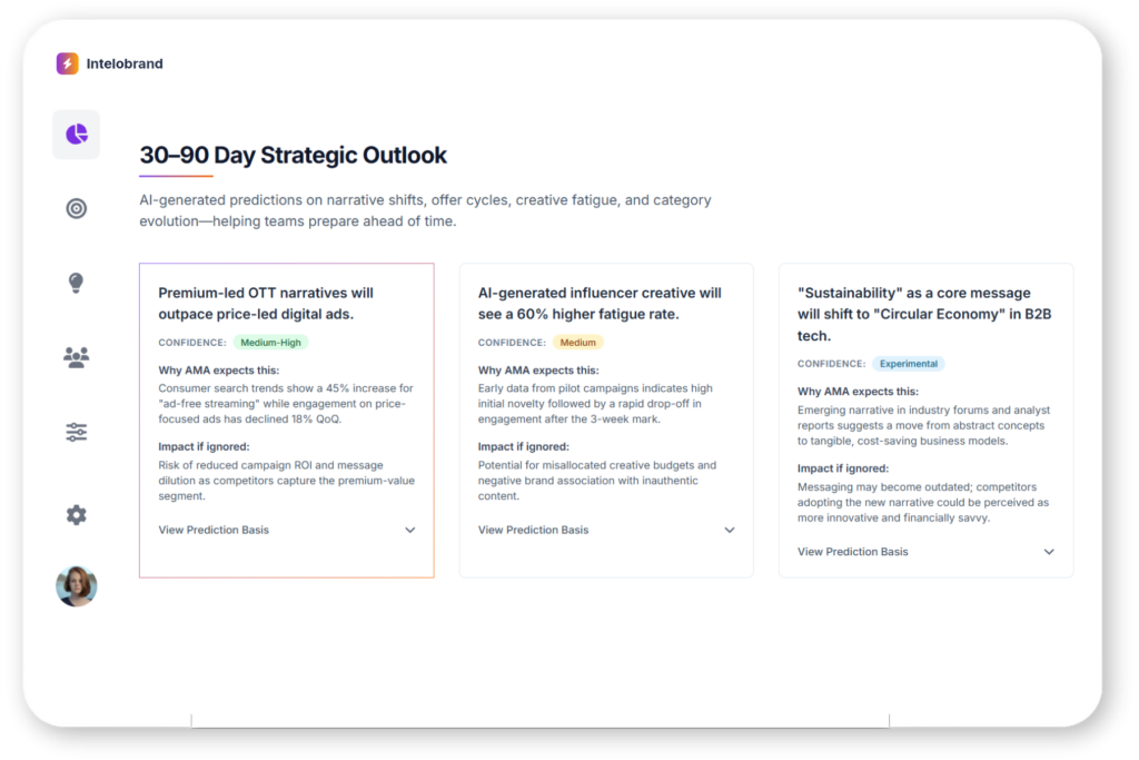 Shows what’s changing in your market, what’s working, what’s failing, and what will likely happen next — so marketing teams stop reacting and start leading.